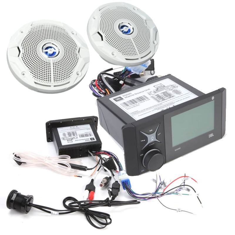 Central JBL Marine Wake R3500 Par Alto Falantes 6 Marine 120w Central Multimidia JBL Marine Wake R3500 em conjunto com o Par de Alto Falantes 6 Stage Marine 120w, ambos na tonalidade branca. Central Multimidia JBL Marine Wake R3500: - Interface intuitiva - Recursos avancados - Conectividade Bluetooth para transmissao de musicas - Receptor de Midia Digital Marinho (Nao Reproduz CDs) - Painel Frontal a Prova DAgua e Resistente a UV com Classificacao IPX7 - Bluetooth 5.0 Integrado para Streaming de Musica - Sintonizador AM/FM/Weather Band - Potencia: 4 x 30W RMS a 4 Ohms - Cobertura de Frequencia FM: 87.5 - 108 MHz Par Alto Falante JBL 6 1/2 Stage Marine 120w: - Altofalante maritimo duas vias de 6 1/2" (160 mm) com tweeter de 1/2" (13 mm) - Potencia: 60 Wrms cada - PMPO: 180W cada - Padrao: IPX5 - Sensibilidade (a 2,83 V/m): 90 dB - Resposta de frequencia: 60 Hz a 20 kHz - Impedancia nominal: 4 Ohms Conteudo da Embalagem: - 01 Alto Falante Maritimo Duas-Vias de 6" - 02 Alto Falantes com Grades Fixas - 01 Kit de Montagem em Aco Inoxidavel - 01 Broca Incluida para Facilitar a Instalacao - 02 Chicotes com Conector Pigtail - 01 Radio JBL R3500 MARINE Wake