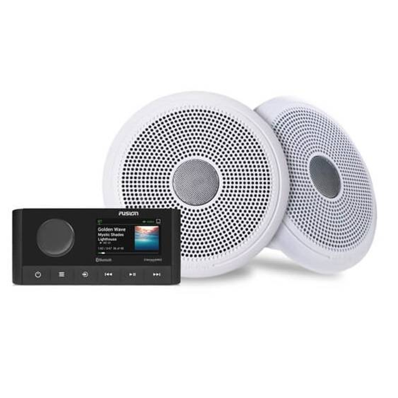 O pack MS-RA210KCW da Fusion e composto pelo sistema de som MS-RA210 e um par de altifalantes de 6.5? Serie XS Classicos em branco. Inclui antena MS-SA1.8, 6m de cabo para altifalante e capa protetora. TUDO O QUE VOCE PRECISA PARA AMPLIFICAR O MOMENTO Dote a sua embarcacao de um excecional sistema de som a um valor excecional. O pack MS-RA210KCW que inclui o sistema MS-RA210 e os altifalantes classicos em branco de 6.5? da Serie XS colocam-lhe a banda sonora perfeita na ponta dos seus dedos. Caracteristicas: Desfrute da sua musica de imediato! Quer o sistema RA210 como os altifalantes vem prontos a serem instalados. Controle a sua musica a partir de qualquer display multifuncoes compativel, smartphone ou tablet ou relogio Garmin O amplificador integrado de Classe D leva a bordo uma maior eficiencia e potencia Tecnologia Multi-Zone permite-lhe controlar duas zonas audio separadas Atualizacoes convenientes de software via tecnologia Bluetooth a partir da aplicacao Fusion-Link no seu aparelho inteligente compativel Expanda o seu sistema de audio com altifalantes Fusion compativeis, subwoofers e amplificadores. MS-RA210 PROTECAO A PROVA DE AGUA IPX6 E IPX7 Desenhado e concebido para o exigente ambiente maritimo, o sistema de som MS-RA210 possui protecao a prova de agua IPX6 e IPX7 ? no painel frontal, para um desempenho mais duradouro. DESIGN E ESTETICA MODERNA Oferecendo uniformidade em toda a estacao de governo, o painel frontal em preto enquadra-se perfeitamente em consolas todas em preto e vidro, complementando a instalacao elegante de outra eletronica e displays multifuncoes. ALTIFALANTES CLASSICOS SERIE XS DESENHADO E CONCEBIDO PARA O AMBIENTE MARITIMO Os altifalantes Fusion possuem um indice de protecao IP65 contra agua, poeira e foram testados em elevados niveis de protecao contra nevoeiro salino e raios UV. DESIGN E ESTETICA MODERNA Testados de acordo com padroes internacionais de resistencia a pressao e imersao em agua, os altifalantes Fusion sao concebidos para robustez e qualidade superiores. ENGENHARIA ACUSTICA E MATERIAIS DE QUALIDADE Os altifalantes Fusion incorporam materiais de elevada qualidade e elementos de design maritimo especificos para garantir que um design e som excecionais a bordo da sua embarcacao. ESPECIFICACOES MS-RA210 Dimensoes (AxLxP): 68 x 157 x 126.6 mm Peso: 350g Protecao: IPX6 e IPX7 (painel frontal apenas, quando instalado devidamente) Alimentacao: 10.8-16 VDC Temperatura de funcionamento: 0º a 50ºC Corrente (max): 15 A NMEA2000 LEN: 1 (50mA) Alcance Bluetooth: ate 10 metros Alcance Wireless ANT: ate 3 metros Frequencias/Protocolos sem fios: Bluetooth 2.4 GHz @ 12 dBm nominal Distancia segura a bussola: 150 mm Display: LCD a cores de 2.7? oticamente selado Amplificador integrado: Classe D (impedancia minima de 4 Ohm) Potencia pico: 200W Potencia de saida (4 Ohm): 26 W RMS x 4 @ 14.4 V entrada < 10% THD DSP integrado: Sim (com perfis pre-configurados) Controlo Fusion-Link: Sim (via displays multifuncoes, smartphone e relogio Garmin) Tecnologia Multi-Zone: 2 zonas Tecnologia Bluetooth: Sim Tecnologia Wireless ANT: Sim SiriusXM: Sim (requer sintonizador de veiculo SiriusXM Connect) DAB : Sim (requer modulo de antena DAB100A) Compatibilidade com controlo remoto NRX: Sim Interface multi-idioma: Bulgaro, Chines (Simplificado/Tradicional), Croata, Checo, Dinamarques, Holandes, Finlandes, Frances, Alemao, Grego, Italiano, Japones, Coreano, Noruegues, Polaco, Portugues (BR/PT), Esloveno, Espanhol, Sueco, Tailandes, Turco Atualizacoes de software: USB Fontes: AM/FM/Bluetooth/USB/iPhone/iPod/AUX x 1/MTP/SiriusXM-Ready (Apenas nos EUA)/DAB (apenas Europa e Australia) Entrada AUX: 1x RCA NMEA 2000: 1x porta USB 2.0: 1x porta Radio por satelite SiriusXM: 1x porta (requer sintonizador de veiculo SiriusXM Connect, nao suporta trafego nem meteorologia) Radio AM/FM: 1x porta de conector de antena Motorola Altifalante: 2x conexoes de altifalante (2 zonas amplificadas) RCA Pre-Out (esquerda, direita e subwoofer): 2 zonas (requer amplificacao externa) Line out: 2 (1 x L R por zona, requer amplificacao externa) Subwoofer out: 1x mono (requer amplificacao externa) ALTIFALANTES Dimensoes fisicas (AxLxP): 177 x 81 mm Protecao: IP65 Configuracao: coaxial Dimensao altifalante: 6.5? Potencia Pico: 200W Potencia RMS: 50W Sensibilidade (1 watt/ 1 metro): 91 dB Resposta de frequencia: 80 Hz ? 18 kHz Impedancia nominal: 4 Ohm Potencia recomendada de amplificador (RMS): 20-150 W / canal Temperatura de operacao: 0º a 50º C Diametro da bobina de voz: 1.18? Material do cone: polipropileno com perimetro de tecido Tipo do tweeter: dome de aluminio Distancia segura a bussola: 310 cm Diametro para instalacao: 135 mm Profundidade para instalacao: 67 mm