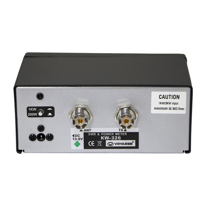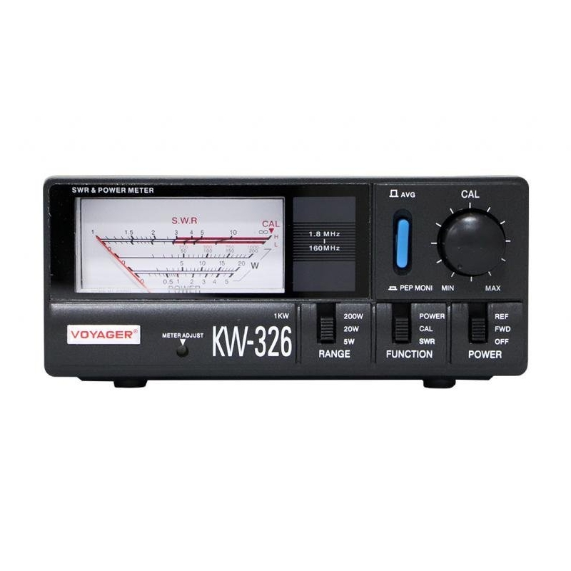 Medidor Wattimetro ROE SWR Potencia - PX/HF/VHF KW-326 Chave para potencia para ate 1000w - 1kW Medidor roe voyager kw - 326 Mede potencia e roe (swr) para a faixa de 1.8 ate 160 mhz e potencia de 200 watts ate 1000w Possui tomada para iluminacao interna do smeter Inclui manual em ingles. Conectores: SO-239 (PX/VHF). Dimensoes: 15 x 10 x 6,5 cm. Peso: 630 Gramas. KW-326 KW326 KW 326